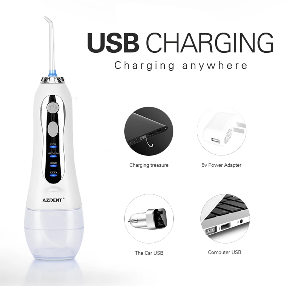 Hot Sale AZDENT Portable Electric Oral Irrigator USB Rechargeable 300ML Water Dental Flosser Water Jet Clean